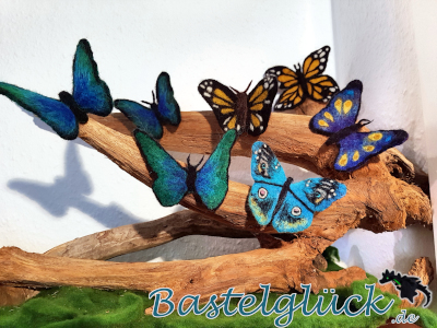 Kleine, in liebevoller Handarbeit nadelgefilzte Schmetterlinge tummeln sich hier und flattern um die Wette.